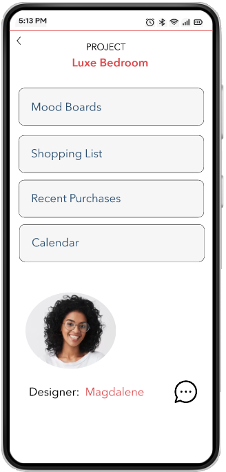 Users can seamlessly launch individual or multiple projects, curate their vision through mood boards, track finances with integrated purchase and expense logging, build project-specific shopping lists, and collaborate directly with their designer – all within the convenience of the app.